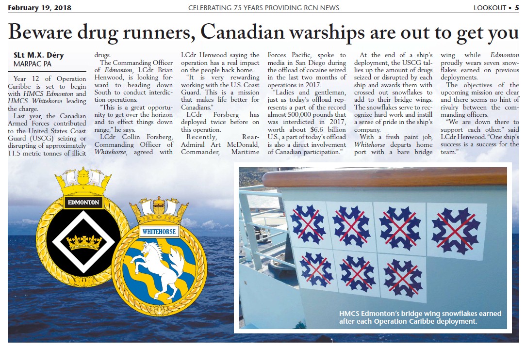 (EDM005) HMCS EDMONTON - 1998 // DND-RCN photo (EDM006) HMCS EDMONTON - 1999 // DND-RCN photo (EDM007) HMCS EDMONTON - 2001 // DND-RCN photo (EDM008) HMCS EDMONTON at anchor with ship dressed - 2010 // DND-RCN photo (EDM009) Article on EDMONTON'S participation in Op CARIBBE // The Lookout Newspaper 19 Feb 2018