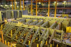 The future HMCS Fraser continues to take shape as the skeg unit progresses in the Assembly Hall at Halifax Shipyard - 25 Sep 2025 Source: Irving Shipyard's facebook page.
