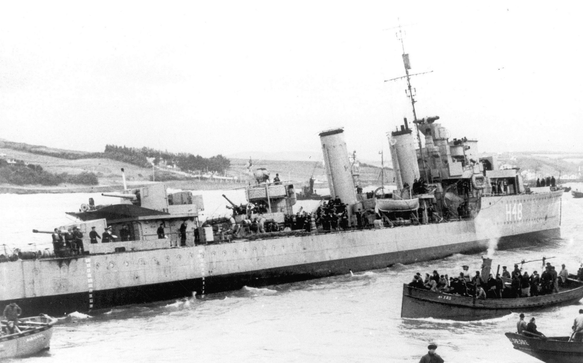 As she approached the coastal town, the FRASER sighted a small sardine boat tossing in the rain-swept waves. When she came alongside, it was found that the boat was carrying the British ambassador, The Canadian Minister to France (Lieutenant-Colonel Georges P. Vanier) and the South African Minister to France, as well as naval, military and air attaches. The FRASER returned to St. Jean de Luz where the rescued diplomatic personnel were transferred to the British cruiser Galatea.