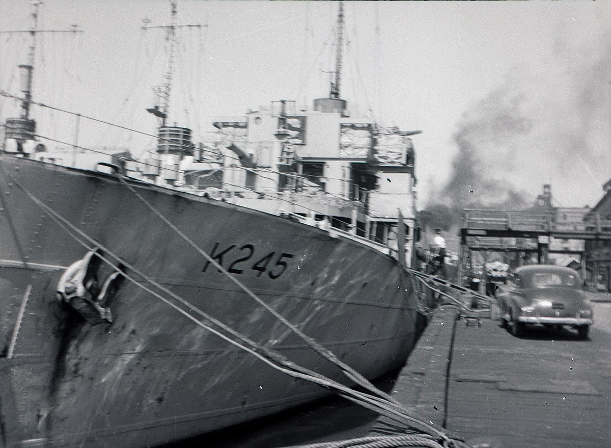 (CA40) Unknown sailors onboard HMCS FREDERICTON K245 in Halifax (CA41) Turner, Tabah, Charleton, Mattson and Seymore on the jetty by HMCS FREDERICTON K245 (CA42) Unknown sailor on HMCS FREDERICTON K245 - possibly in the radio room (CA43) Unknowns sailors horsing around on the fo'c's'le of HMCS FREDERICTON K245