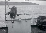 (CA131) Ship's mascot sitting on a receiver in the Radio Room of HMCS FREDERICTON K245 (CA132) Charles Atkins at the signal light on HMCS FREDERICTON K245 (CA133) Unknown sailor reading a book on the bridge of HMCS FREDERICTON K145 - This photo was taken after her refit from Jun-Oct 1943.