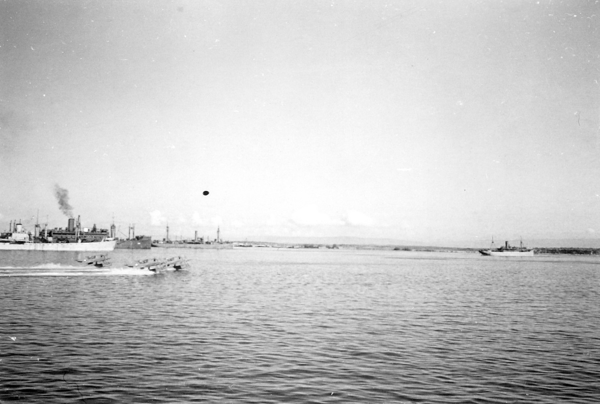 (CA84) Corvette USS Fury, Cuba (CA85) Destroyer USS SIMPSON, Cuba (CA86) Unknown warship in harbour, Cuba (CA87) Various ships in harbour, Cuba (CA88) Aircraft passing tankers while landing / taking off in harbour, Cuba