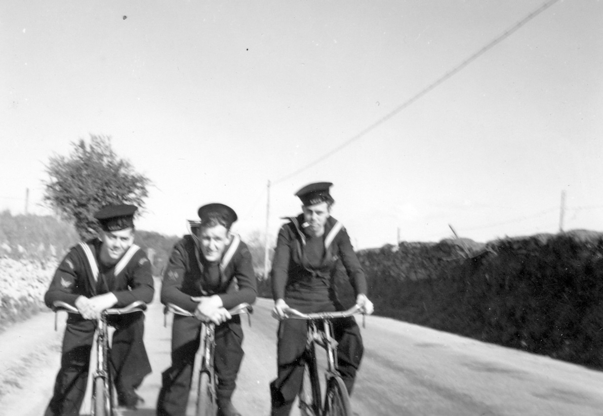 (CA128) Charles Atkins (left) and 2 shipmates ashore in Northern Ireland (CA129) Charles Atkins and shipmate ashore in Northern Ireland (CA130) Two sailors from HMCS FREDERICTON K235 ashore (with Charles Atkins) in Northern Ireland