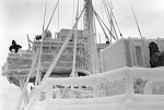 (CA167-CA171) HMCS FREDERICTON K245 heavily iced-up after a winter crossing in the North Atlantic (CA171) Unknown officer on the boat deck of HMCS FREDERICTON K245