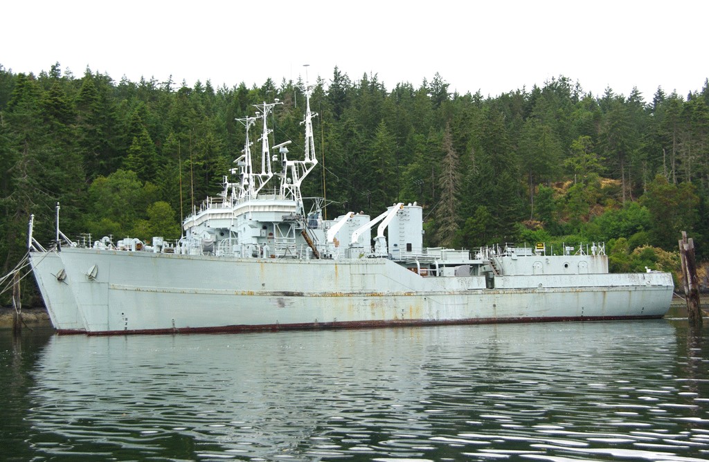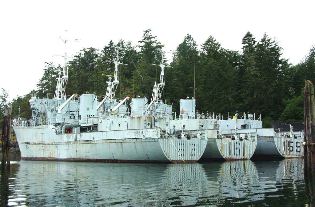 (ChS001 - ChS005) Former HMCS MIRAMICHI 163, HMCS THUNDER 161 and HMCS FUNDY 159 at Beecher Bay, BC circa 2008 before being broken up at Surrey, BC. Photographer Chris Sattler / © 2008 Courtesy of Dave Shirlaw
