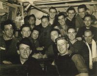 (WSR007) Ship's mascot of HMCS GODERICH // Note: On the back of the Starboard Mess photo, the mascot is named "Little Gersh". In an article in the Crowsnest Magazine, he is named "Timmy" (WSR009) Starboard Communication Mess Feb 1945 // Click here to view the names on back of the photo // Click here to view the photo with sailors numbered for identification purposes // (1) Donald Barton, Sig TO (of Mount Brydges, Ontario) (2) L.W. Vanderlip, Tel TO (0f 6544 King St. W., Sunnyside, Toronto, Ontario (3) Rodney N. Walker, L/Sig (of 5408 Verdun Ave, Verdun Quebec) (4) J.K. Cunningham, Tel (of 190 Cooper St., Ottawa, Ontario) (5) John P. Roberts, Sig (of 63 Erie St., South Ridgetown, Ontario (6) Brian Prentice, L/Tel (of 544 Home St., Winnipeg, Manitoba) (7) "Little Gersh" on the table (WSR009) HMCS GODERICH Communications Branch - 1945 // Click here to view the names on the back of the photo // Click here to view the sailors numbered for identification purposes // (1) "Little Gersh" (2) Harold Wannamaker (3) Don Barton (4) Jack Cummingham (5) Pat Connolly (6) Brian Prentice (7) Lloyd Vanderlip (8) Barry Nelson (9) William Roast (10) Harold Metcalf (11) Rodney Walker (12) Jack Roberts From the collection of William Roast, Telegraphist, RCNVR Courtesy of Brad Roast