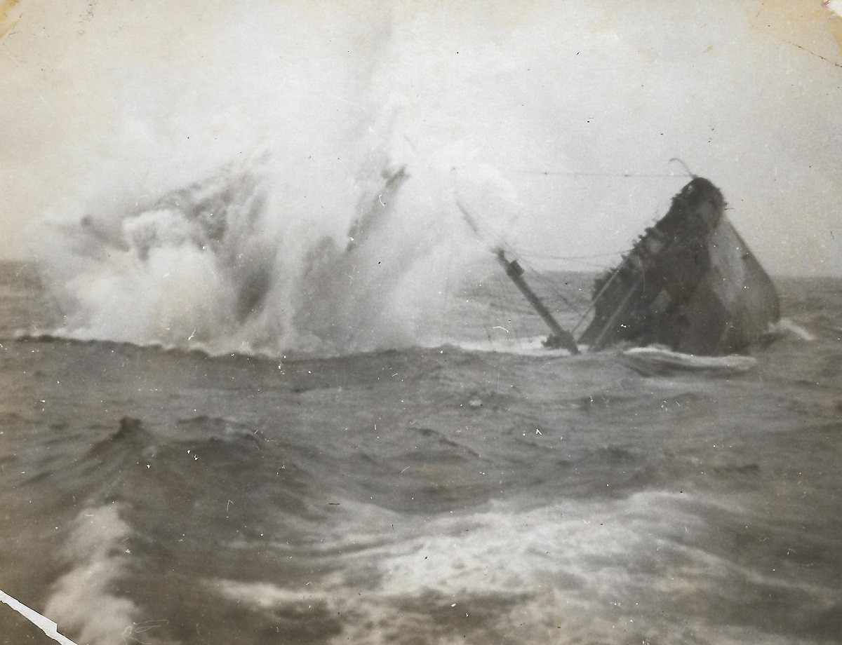 (AWW044 - AWW048) HMCS GODERICH sinking the bow section of the "SS British Freedom" with depth charges