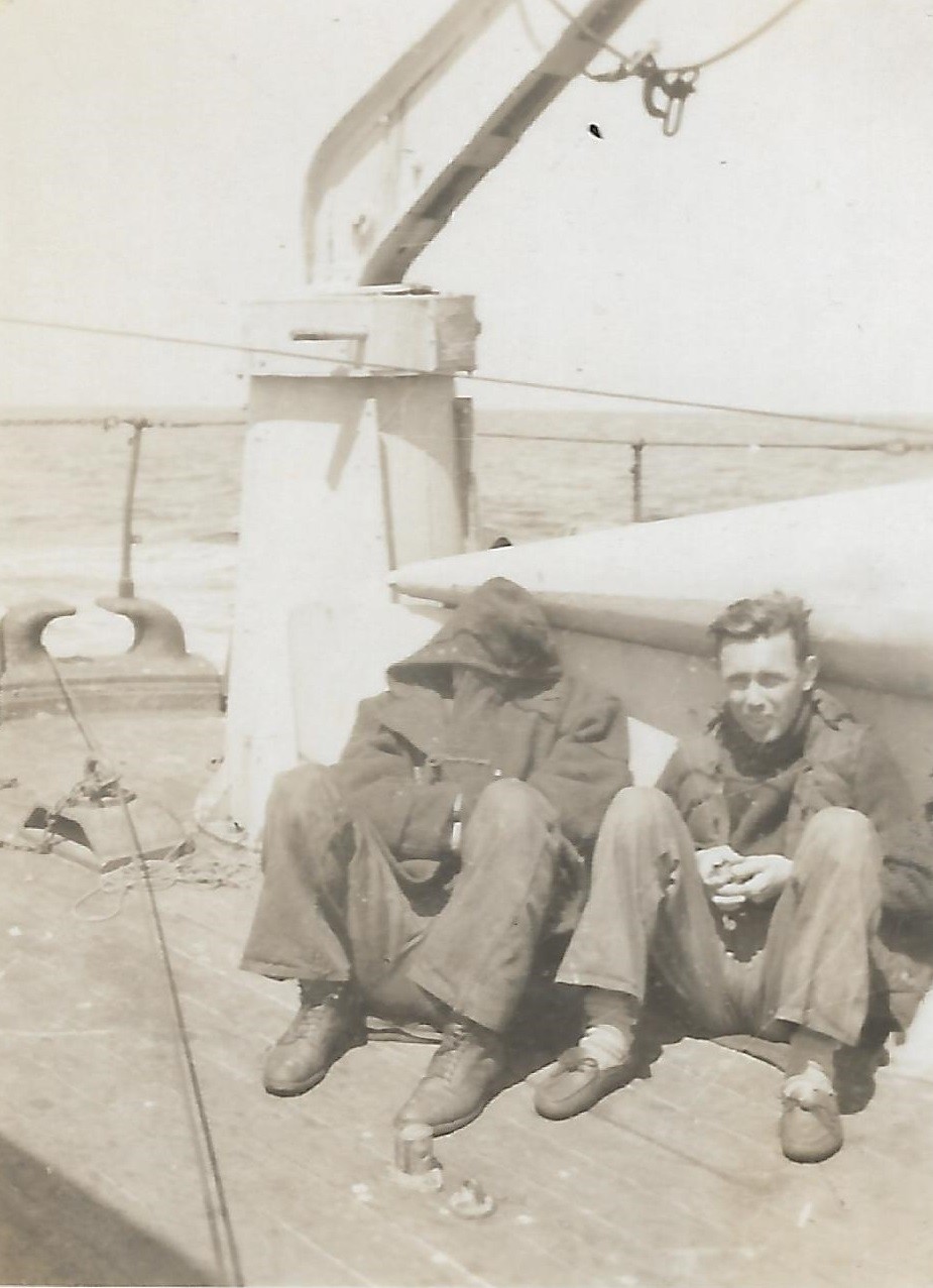 (HLM001) HMCS GODERICH J260 (HLM002) HMCS GODERICH J260 (HLM003) Harold Murray on the fo'c's'le of HMCS GODERICH J260 (HLM004) Unidentified sailors in a mess deck on HMCS GODERICH J260 (HLM005) Unidentified sailors in a mess deck on HMCS GODERICH J260 From the collection of Harold Murray, Able Seaman, RCNVR Courtesy of Rick Murray