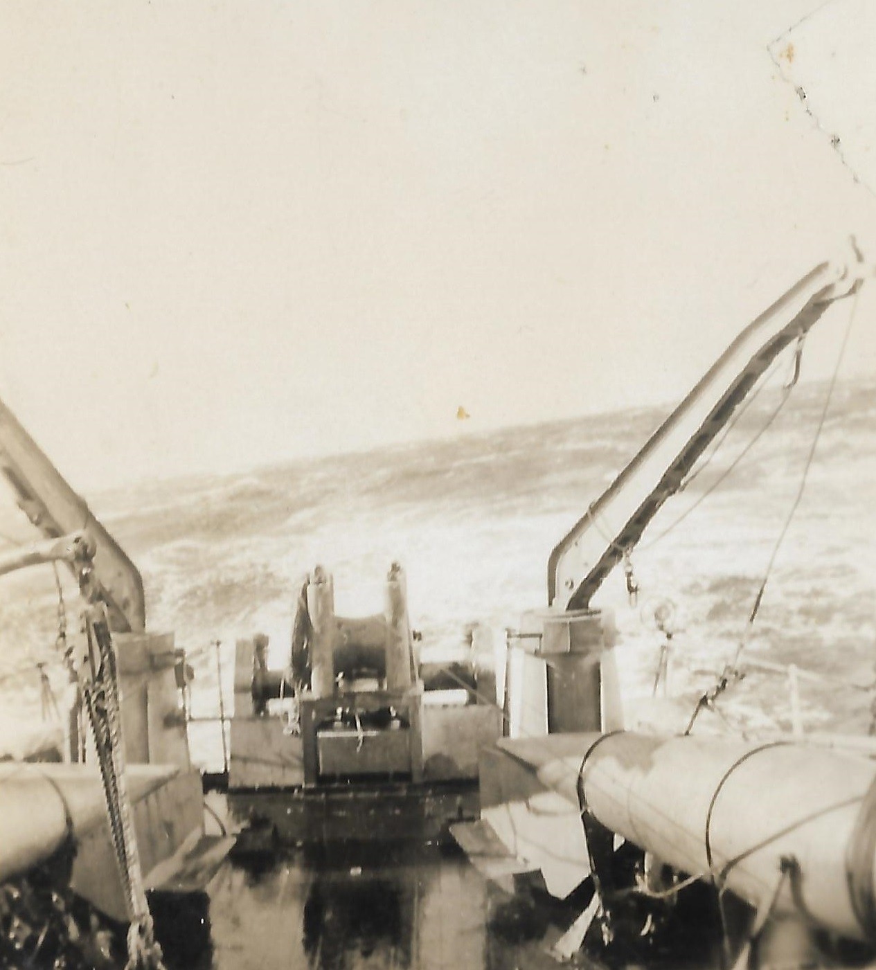 Minesweepers at work off the approaches to Halifax (AWW090) Three minesweepers in formation astern of HMCS GODERICH (AWW091) Either preparing to stream or retrieving the paravane on HMCS GODERICH (AWW092) Unknown minesweeper