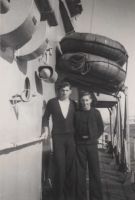 (DW004) Doug Wagar (left) and unknown shipmate on HMCS HAIDA (DW005) Doug Wagar on HMCS HAIDA From the collection of Doug Wagar Courtesy of Jesse Chard