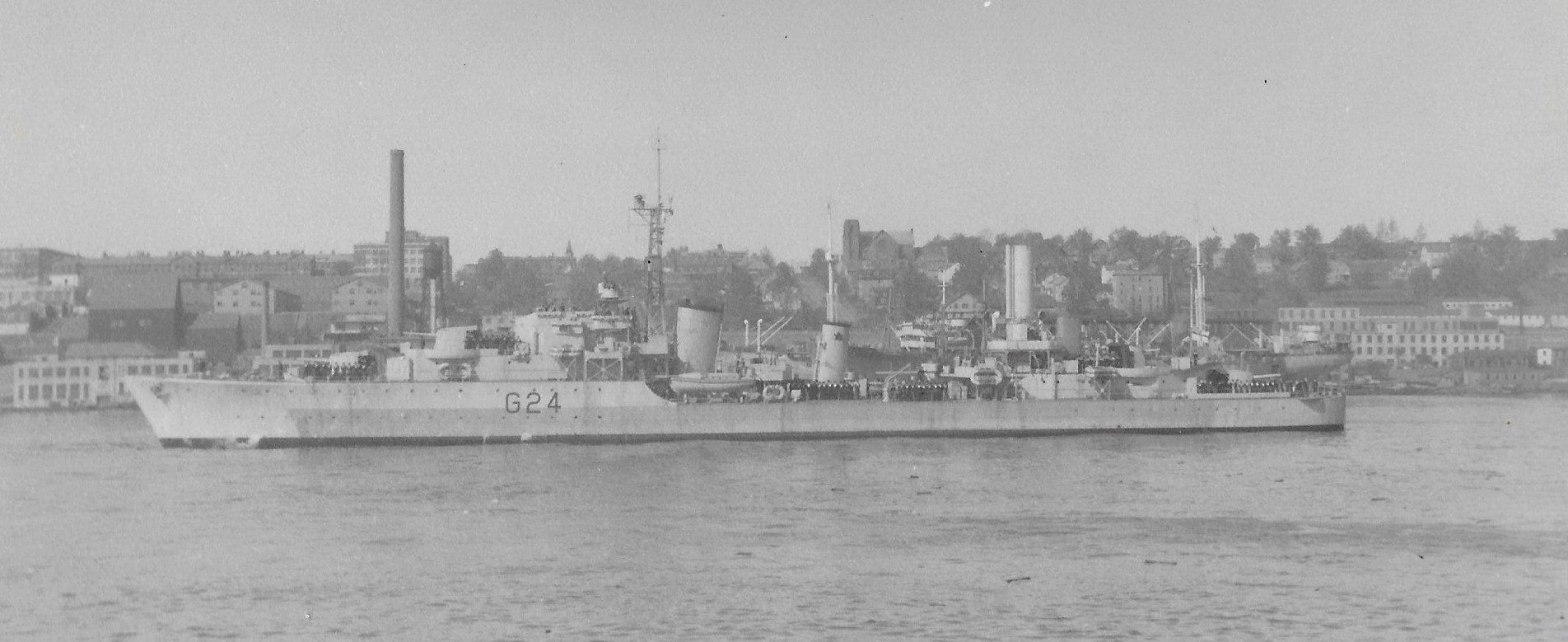She was re-commissioned at Halifax for training purposed in 1950, but sailed on 22 Jan 1951 on the first of three tours of duty in Korean waters. Following her Korean tours, she returned to her training role.