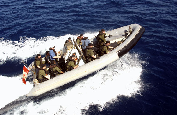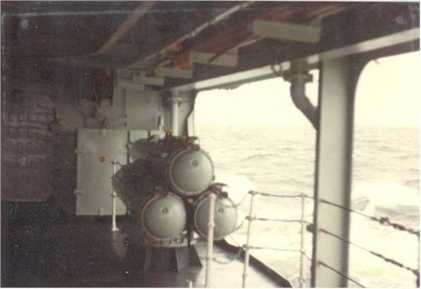 (MC025) Torpedo tubes on HMCS IROQUOIS 280 circa 1982-84 (MC026) Zodiac on the quarterdeck of HMCS IROQUOIS 280 circa 1982-84 Courtesy of Mitch Cormier