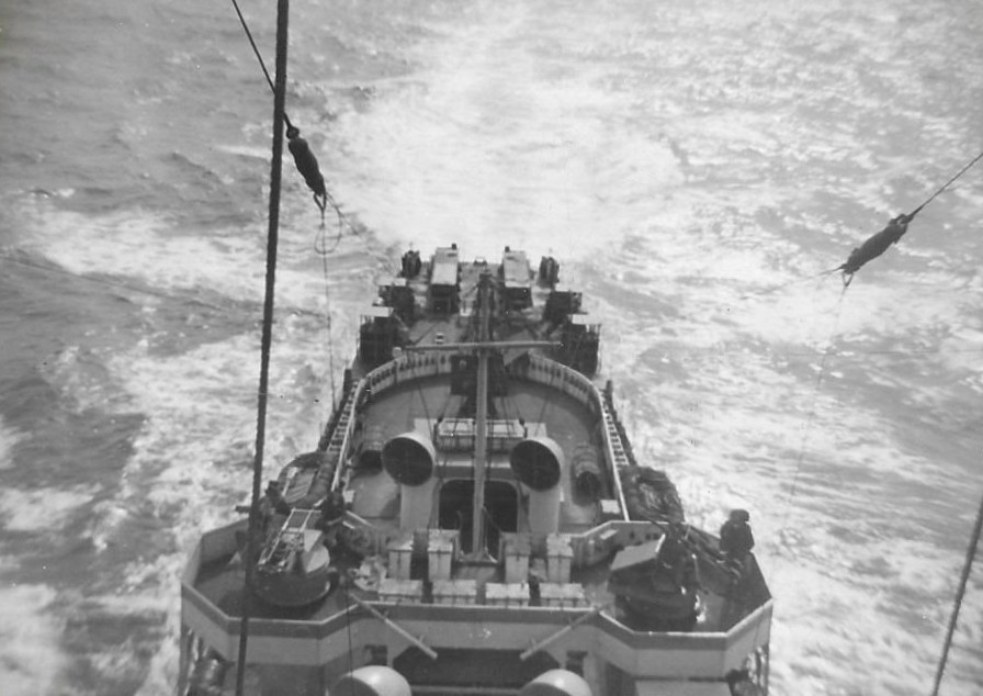 (SD29) Depth charge exploding astern of HMCS LA HULLOISE - 1952 (SD30) Squid exploding ahead of HMCS LA HULLOISE - 1952 (SD31) Personnel transfer at sea between HMCS CRESCENT 226 and HMCS LA HULLOISE - 1952 (SD32) Unknown cruiser off the port bow of HMCS CRESCENT 226. Very likely HMCS QUEBEC - 1952 (SD33) HMCS CRESCENT 226 - 1952