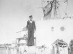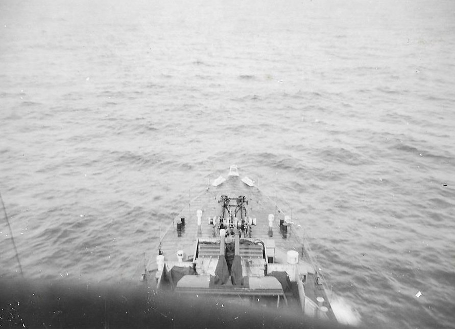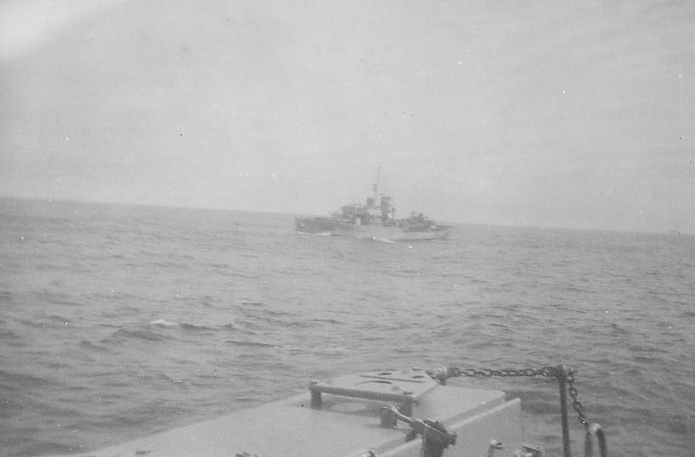 (WHV073) Bill Vickers on the bridge of HMCS LA HULLOISE K668 (WHV074) Unknown destroyer following astern of HMCS LA HULLOISE K668. Photo taken from the port AA gun tub (WHV075) Bill Vickers (closest to the camera) and an unknown sailor on the boat deck of HMCS LA HULLOISE K668 (WHV076) Unknown frigate passing near HMCS LA HULLOISE K668 (WHV077) Unknown corvette sailing near HMCS LA HULLOISE K668