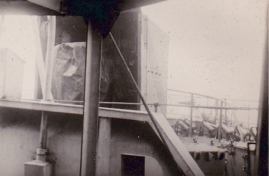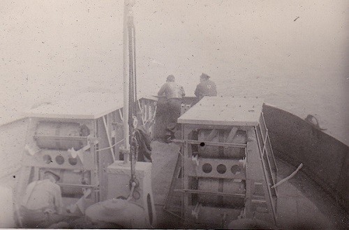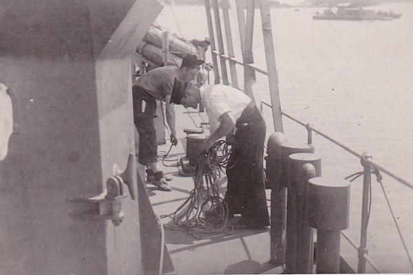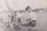 (JR004) "Later when Halifax was mined" // John Roberts on the left with unknown sailor on the right (JR005) "Pings" on HMCS LETHBRIDGE K160 (JR006) "Pilot" on HMCS LETHBRIDGE K160 (JR007) "Ping Shack" on HMCS LETHBRIDGE K160 (JR008) "Sig" on HMCS LETHBRIDGE K160