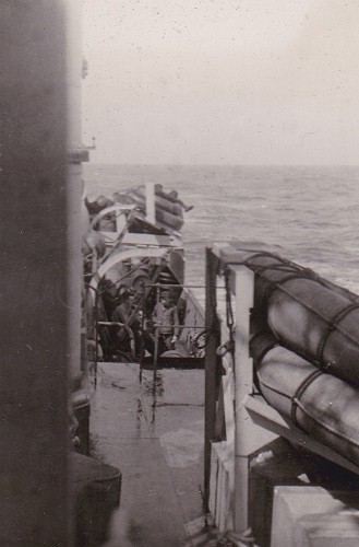 (JR039) "One of the Best W.K.s afloat" on HMCS LETHBRIDGE K160 (JR040) "The good companions?" on HMCS LETHBRIDGE K160 (JR041) "The Jimmy gets a stowaway" - The boats crew of HMCS LETHBRIDGE K160 at work (JR042) "Powell looks anxious - wonder why?" - Bringing in the seaboat of HMCS LETHBRIDGE K160 (JR043) "Lookouts...?" on HMCS LETHBRIDGE K160