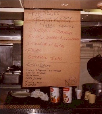 (BR05) HMCS MACKENZIE'S Tadpole Breakfast for Crossing the Equator during Ex SOPLOY '82 (BR06) OSBN Bruce Roper enjoying his tadpole breakfast prior to the Crossing the Line Ceremony during Ex SOPLOY '82