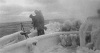 MAHONE, Spring, 1943. 4-inch shell being rammed home. Photo taken from the ammunition hatch. The