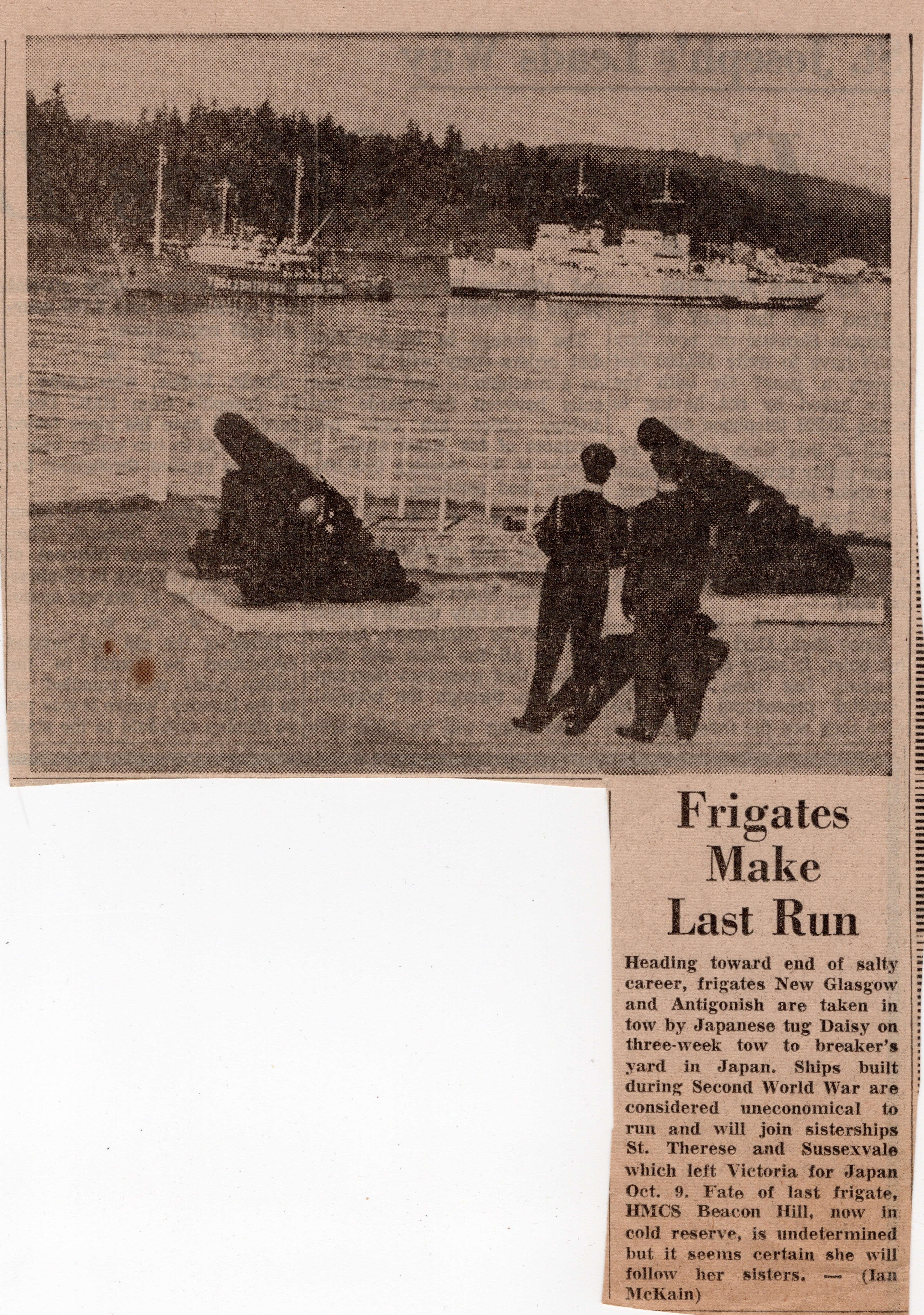 Undated article - The former HMCS NEW GLASGOW and HMCS ANTIGONISH depart