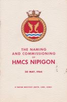 Built by Marine Industries Ltd., Sorel, NIPIGON was commissioned on 30 May 1964 with the wife of the then Governor-General Georges P Vanier DSO MC & Bar CD, Madame Pauline Vanier, as her sponsor. She arrived in Halifax for the first time on 07 Jun 1964 serving most of her career with the Atlantic Fleet.