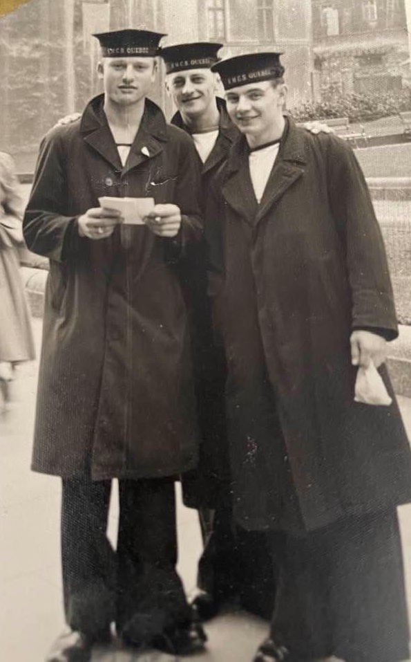 After transiting from Esquimalt to Halifax in 1952, QUEBEC was soon sailed for Newfoundland where she took Lieutenant Governor Sir Leonard Outerbridge CBE - DSO, on an official tour of isolated Nfld out ports. This was a RCN service guaranteed under the terms of union with Canada. Upon returning to Halifax, the QUEBEC was selected as the flagship of Rear Admiral Bidwell, and tasked to lead Canada's Coronation Squadron to the Queen's Review of all Royal Naval and U S Naval Vessels at Spit head. HMCS QUEBEC was on hand for the opening of the Cape Breton Causeway on 13 Aug 1955 and fired a gun salute the mark the occasion. QUEBEC departed Halifax on 14 Jan 1955 for a good-will cruise around Africa, returning to Halifax on 15 Apr 1955. Later in 1955 she was tied up at the RCSCC Training Camp [Protector] at Point Edward Naval Station, Cape Breton N S. She was finally paid off on 13 Jun 1956. On 06 Feb 1961 she arrived at Osaka, Japan to be broken up.