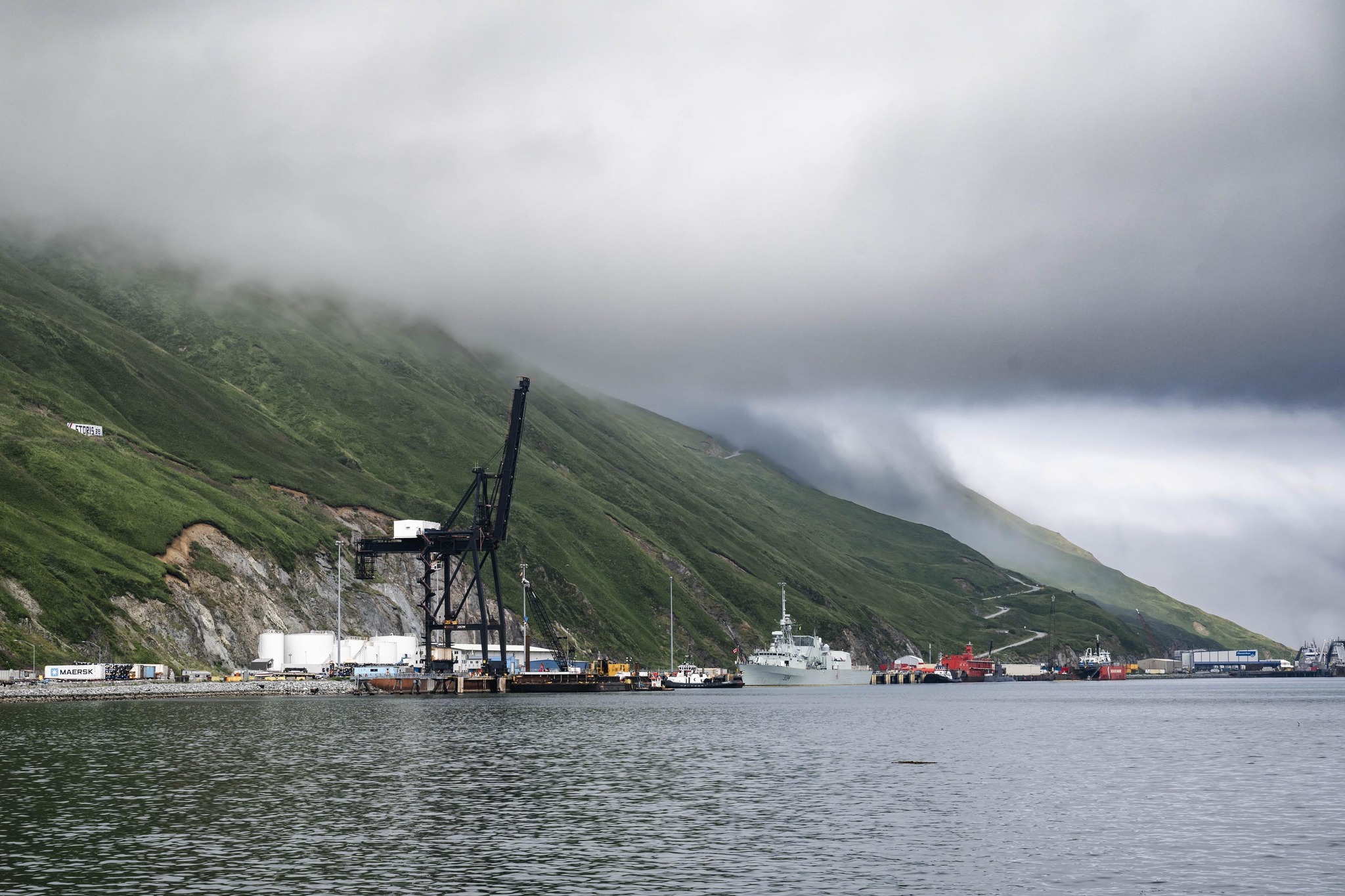 (REG021) Royal Canadian Navy ship HMCS REGINA (FFH 334), Republic of Singapore Navy Formidable-class frigate RSS Supreme (FFG 73), and Republic of Korea Navy ship ROKS Chungmugong Yi Sun-sin (DDH 975) steam in formation during a group sail off the coast of Hawaii. // Defence Media 17 Jun 2024 (REG022) HMCS REGINA 334 alongside in the port of Dutch Harbor, Alaska during Operation LATITUDE on 24 Aug 2025 // Photographer: Master Corporal William Gosse, Canadian Armed Forces. (REG023) HMCS REGINA 334 prepares to drop the ships anchor in Kachemak Bay near Homer, Alaska, United States during Operation LATITUDE on 08 Sep 2025 Photographer: Master Corporal William Gosse, Canadian Armed Forces