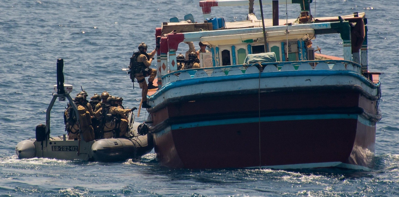 (REG007 - REG009) On April 6, 2019, HMCS REGINA seized 2,569 kilograms of hashish. HMCS REGINA spotted a suspicious fishing vessel, known as a “dhow”, off the coast of Oman and proceeded to stop the boat to investigate further. The ship deployed its Naval Tactical Operations Group (NTOG) team. The NTOG is a dedicated Royal Canadian Navy unit that specializes in advanced boarding operations at sea. A search of the dhow was conducted, during which 119 bags of hashish were located in the ice hold. The narcotics were transferred to HMCS REGINA and subsequently destroyed.