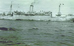 (JM34-JM35) HMCS RUNNYMEDE - photos taken by Therese Murphy, John's wife, from the dock at Cap-de-la-Madeleine, QC as the RUNNYMEDE made its 1st run to sea from the Vickers Yard in Montreal where she was built. John had called ahead to tell his wife that the ship would be passing by.
