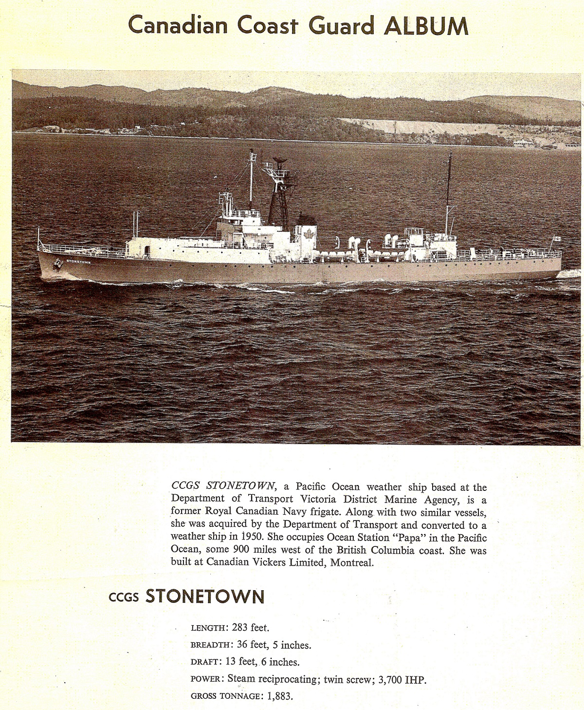 survivors of the vessel Pennsylvania (RS79) Weather ship CGS STONETOWN c1957-58