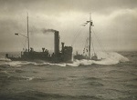 (SDY-V001)Lieutenant G. Eric McAllister in informal battle dress at the ship's helm. Behind him are the bins used for storing signal flags on HMCS SUDEROY V, the ship in which he served during the Second World War. // Source: website - McAllister Genealogy - Under the White Ensign (SDY-V002) Unknown Sailor chipping ice on HMCS SUDEROY V // Source: website - McAllister Genealogy - Under the White Ensign (SDY-V003)HMCS SUDEROY V in rough seas // From the collection of Tel William (Bill) Green, RCNVR // Courtesy of Nancy Johnson (SDY-V004) HMCS LLEWELLYN J278 and HMCS SUDEROY V J05 seen from the sweep deck of HMCS LLOYD GEORGE J279 // From the collection of François Messier, AB, RCNVR // Courtesy of Denis Messier