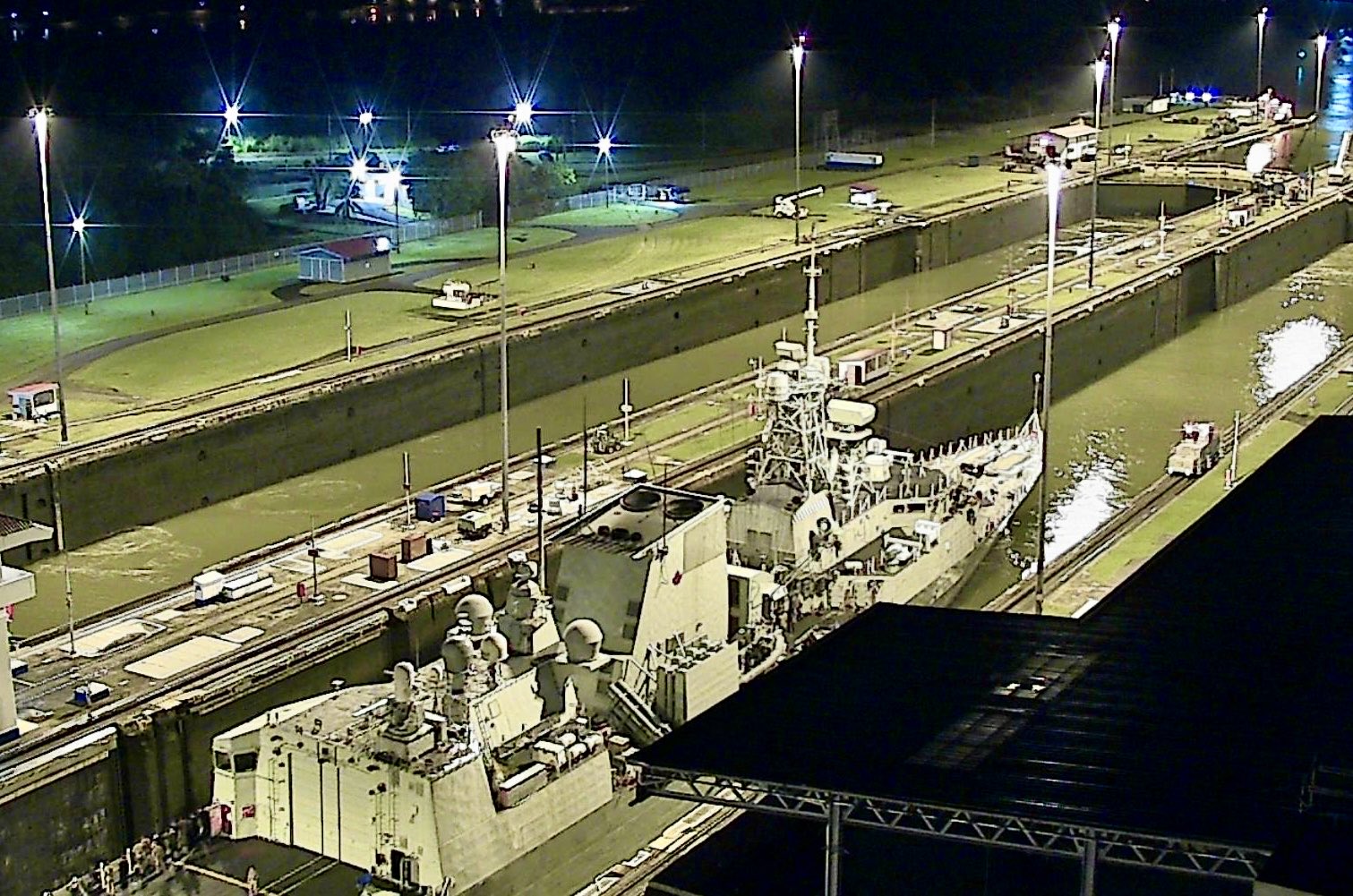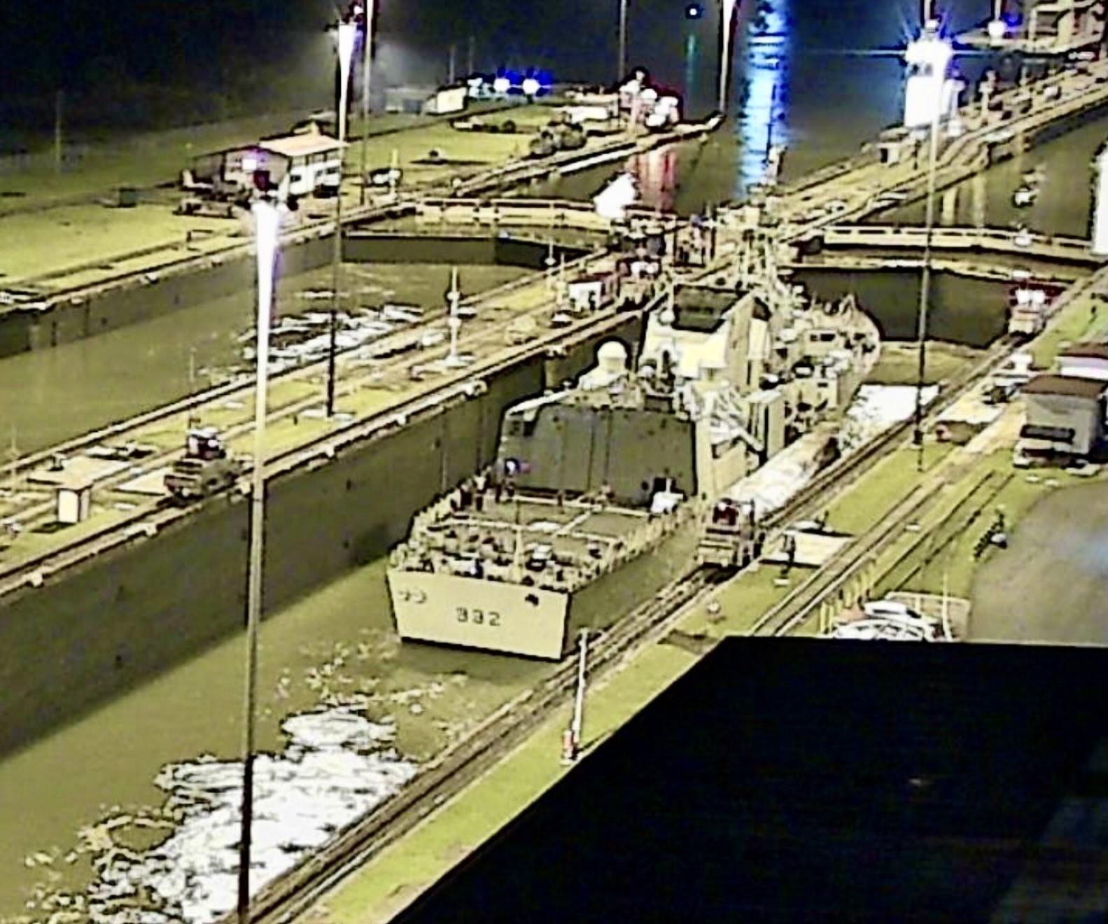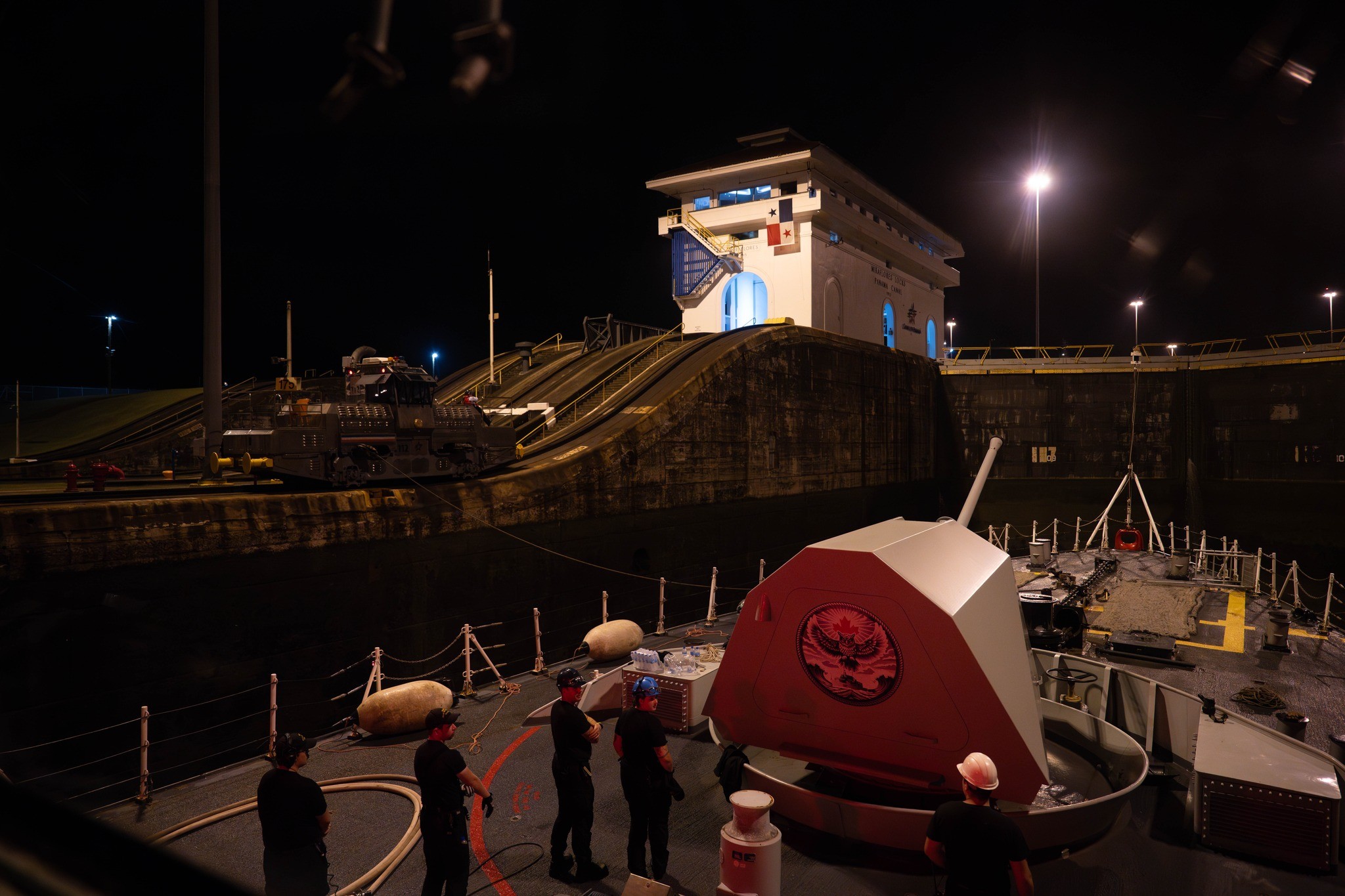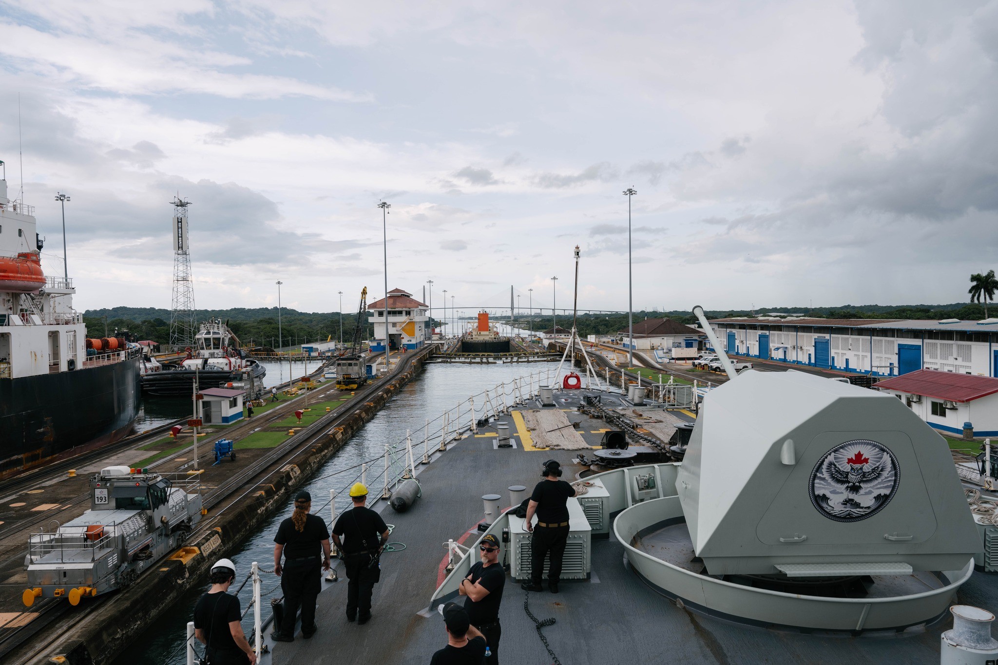 (VDQ016 - VDQ017) HMCS VILLE DE QUÉBEC approaching the Miraflores Locks of the Panama Canal 25 Oct 2025 (VDQ018 - VDQ019) HMCS VILLE DE QUÉBEC northbound in the Miraflores Locks on the Panama Canal 25 Oct 2025 // Source: webcam