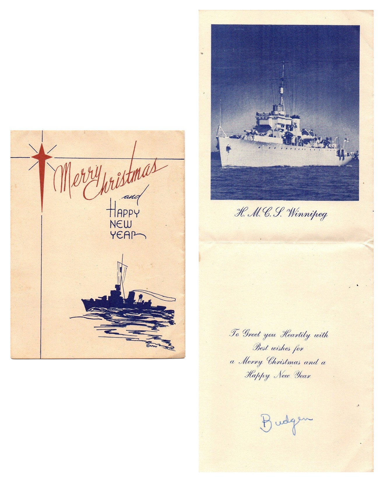 (WNI006) HMCS WINNIPEG J337 Christmas card // From the collection of Cecil Huras // Courtesy of Ric Huras