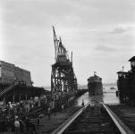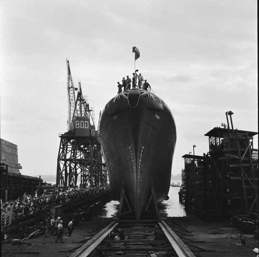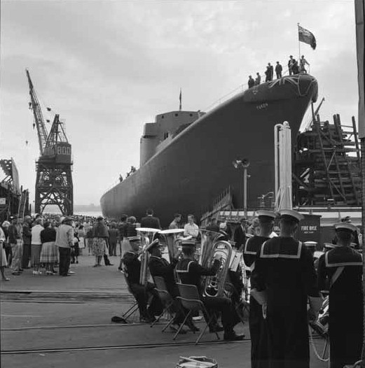 (YKN001 - YKN004) The launching of HMCS YUKON at Burrard Dry Dock Ltd 29 Jul 1961