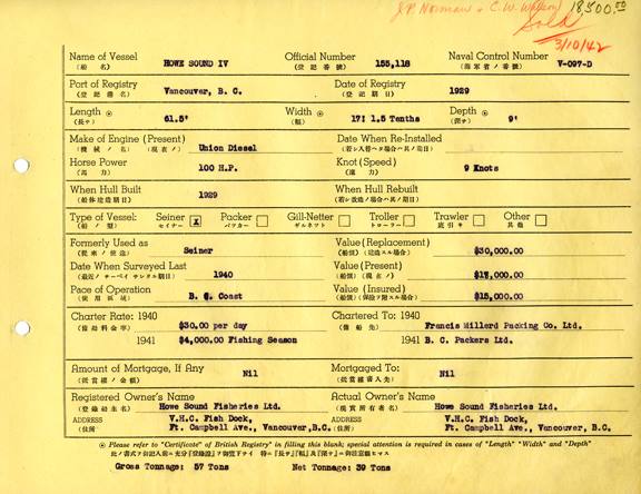 Certificate of Registry - Howe Sound IV Courtesy of Dirk Septer