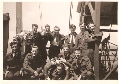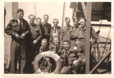 (LR004) Servicemen returning to Canada after the Second World War onboard the Troopship LADY RODNEY - May 1946 // Andre Bayard, kneeling, front, centre (LR005) Servicemen returning to Canada after the Second World War onboard the Troopship LADY RODNEY - May 1946 // Andre Bayard, kneeling behind Kisby ring From the collection of Andre Bayard Courtesy of René Bayard