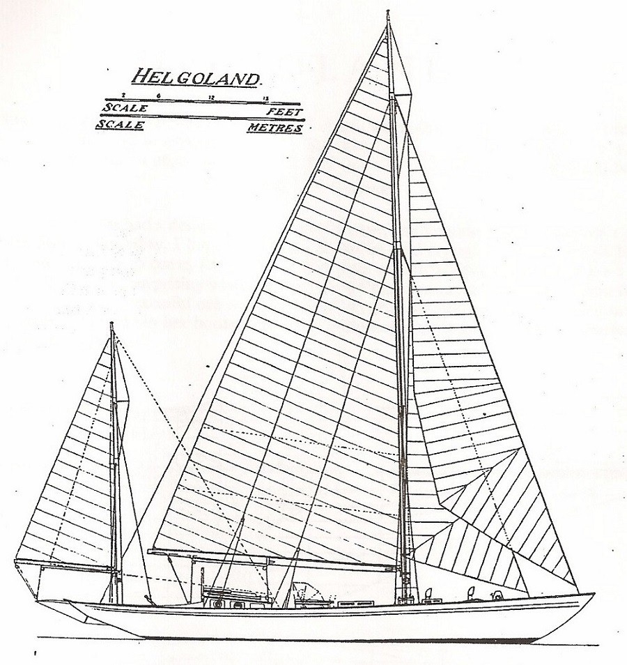 "The impression one gets from these plans is that they have been drawn by a man with a thorough knowledge of the sea and that the vessel can come straight from the builder's yard into the race capable of winning it, or she can sail straight from the builder's yard round the word, for these plans, without doubt, represent a very fine cruiser that would also make a good ocean racer, a vessel on which men can live in comfort for months on end. Seaworthiness, speed and comfort all combine to make her a perfect little ship." (From the book "The History of the Helgoland")