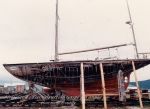 In 1984, René Renaud, a fisherman from Bonaventure, on the Gaspé coast in Quebec, purchase her. After having divers removed 5 inches of seaweed and barnacles, he had her towed to Paspebiac, Que. The restoration lasted two years. The Oregon pick deck was completely removed and rebuilt. Some hull planking was replaced as well and the engine, transmission and sails - for a cost of $95,000.00.