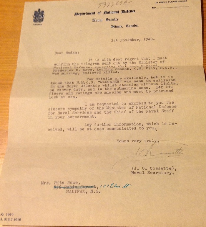 Kenneth, Sto PO, 21344, RCN, MPK - 22 Oct 1940, HMCS MARGAREE -