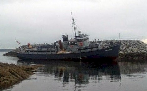 (318-001) YFB-318 (318-002) Passenger area of YFB-318 (318-003) Bridge of YFB-318 (318-004) YFB-318 aground on the rocks off Saanich,BC, 03 Apr 2014. She was able to float off on then next high tide // Source: RCN News Magazine