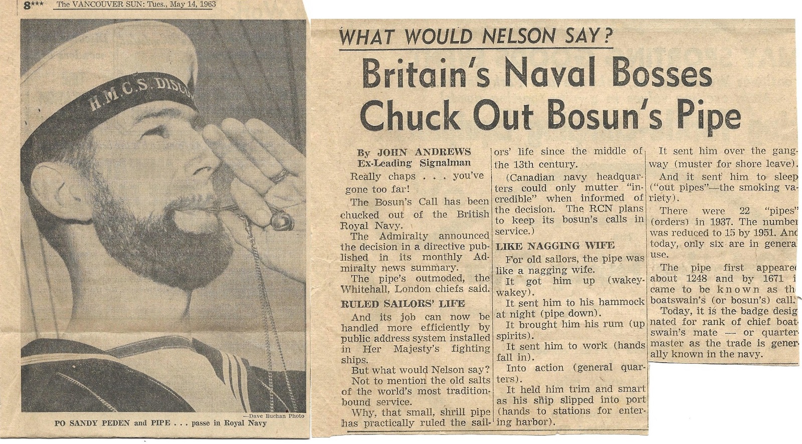 Britain's Naval Bosses Chuck Out Bosun's Pipe The Vancouver Sun 14 May 1963