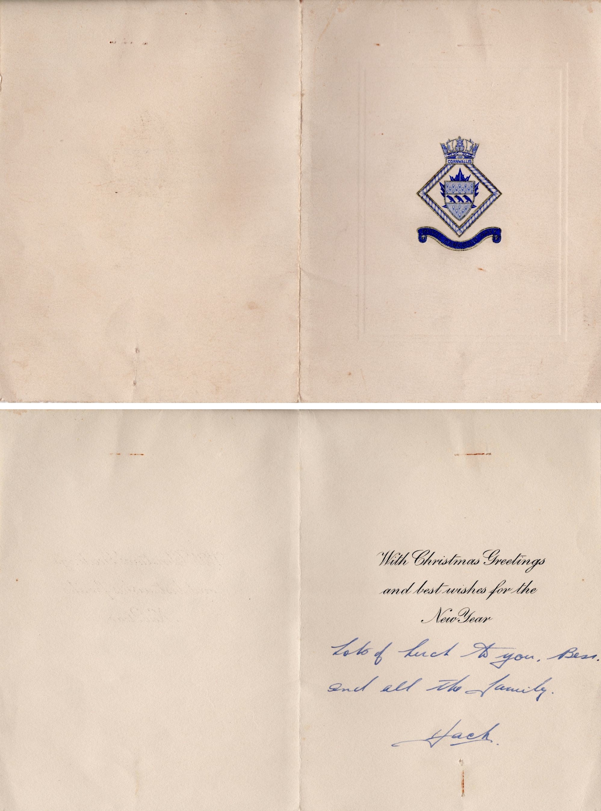 (O&S041) Royal Canadian Navy Christmas Card // Courtesy of David Upright (O&S042) HMCS CORNWALLIS Second World War Christmas Card // Courtesy of David Upright (O&S043) HMCS NIAGARA (Washington, USA) Christmas Card // Courtesy of David Upright