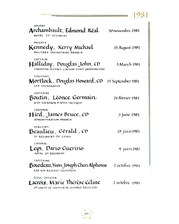 MORTLOCK, Douglas Howard, CD, Sgt, C.A.F., died - 15 Sep 1981, CFB SHEARWATER - Husband of Rosaline Mary (nee Walsh) Mortlock of Eastern Passage, Nova Scotia. Father of Susan and Cynthia.