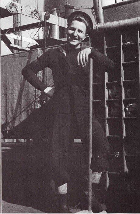 Signalman Donald King McGrath on the flag deck of HMCS ATHABASKAN G07 Courtesy of Donna McGrath