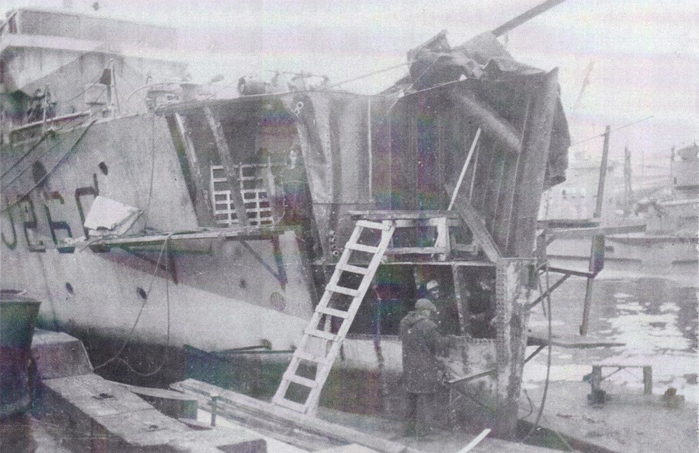 (JRS001) HMCS GODERICH J260 in drydock being repaired after her collision with tanker Iocoma in Halifax harbour (JRS002) HMCS GODERICH J260 Ship's Company Photo (JRS003) HMCS U-889 - former German U-boat U-889