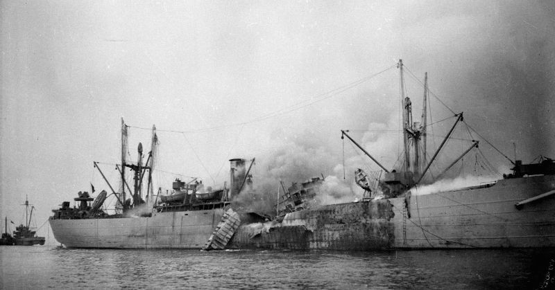 Green Hill Park (Park Steamship Company) was a freighter, built in 1943. On 06 Mar 1945 she caught fire & exploded, burning for several days in Vancouver Harbour, 8 killed 19 wounded.. Some longshoremen later confessed that they had clandestinely tapped the whisky barrels, and it was the spilled whisky that accidentally ignited, and started the fire. Green Hill Park was severely damaged, but she was repaired, sold off, and operated again under Panamaian ownership as Phaeax II, then later as Phaeax II in 1946, and as Lagos Michigan in 1956. She was scrapped in Taiwan, in 1967.
