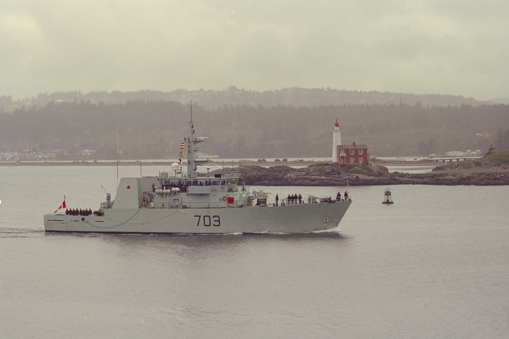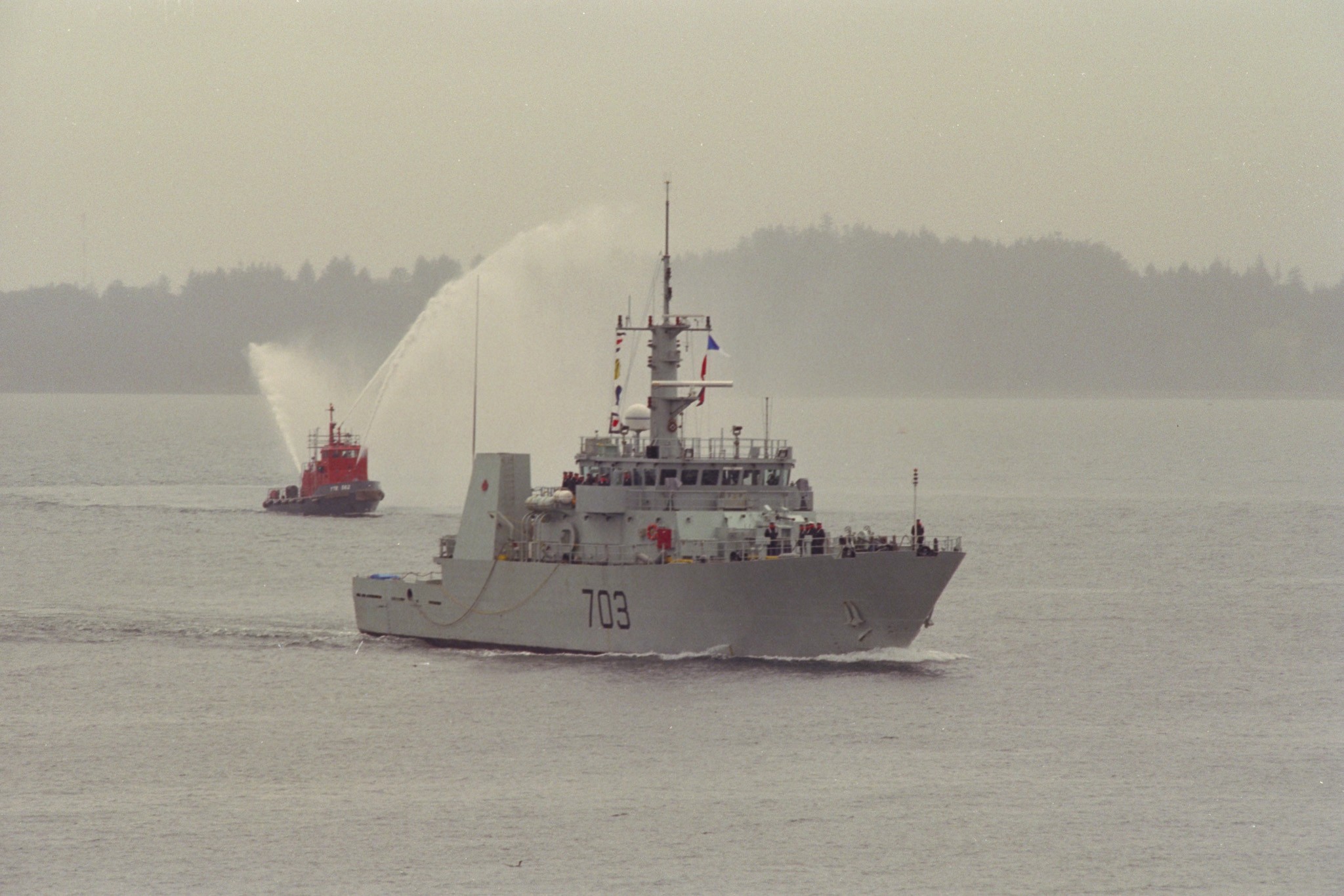 The first ship to bear this name, she was built by Halifax Shipyards Ltd., Halifax, N.S., EDMONTON was launched on 16 Aug 1996. On 03 Mar 1997, she sailed west for Esquimalt in company with HMCS MORESBY. On 21 Jun 1997 she was commissioned at CFB Esquimalt and assigned to the West Coast.