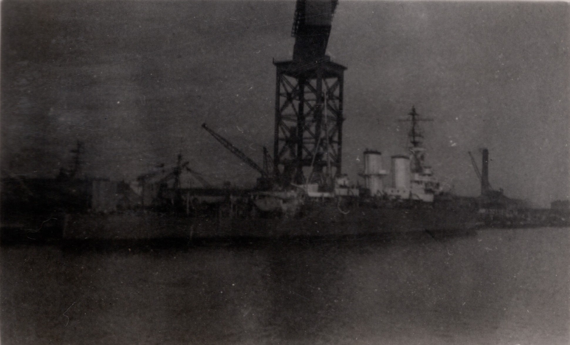 (NFA109) HMCS NEW GLASGOW K320 in drydock at Roysyth, Scotland for repairs after ramming U-1003 off Lough Foyle, approximately 11 miles from Londonderry, on 21 Mar 1945 at 2300 hours. (NFA110) The "X" marks the area on HMCS NEW GLASGOW K320 where U-1003's conning tower push in the ship's hull, bent the shaft and port propeller (NFA111 - NFA112) HMCS NEW GLASGOW K320 with ship dressed for V.E. Day while in drydock at Rosyth, Scotland (NFA113) HMS AMAZON I39 in drydock at Rosyth, Scotland with HMCS NEW GLASGOW K320 astern of her