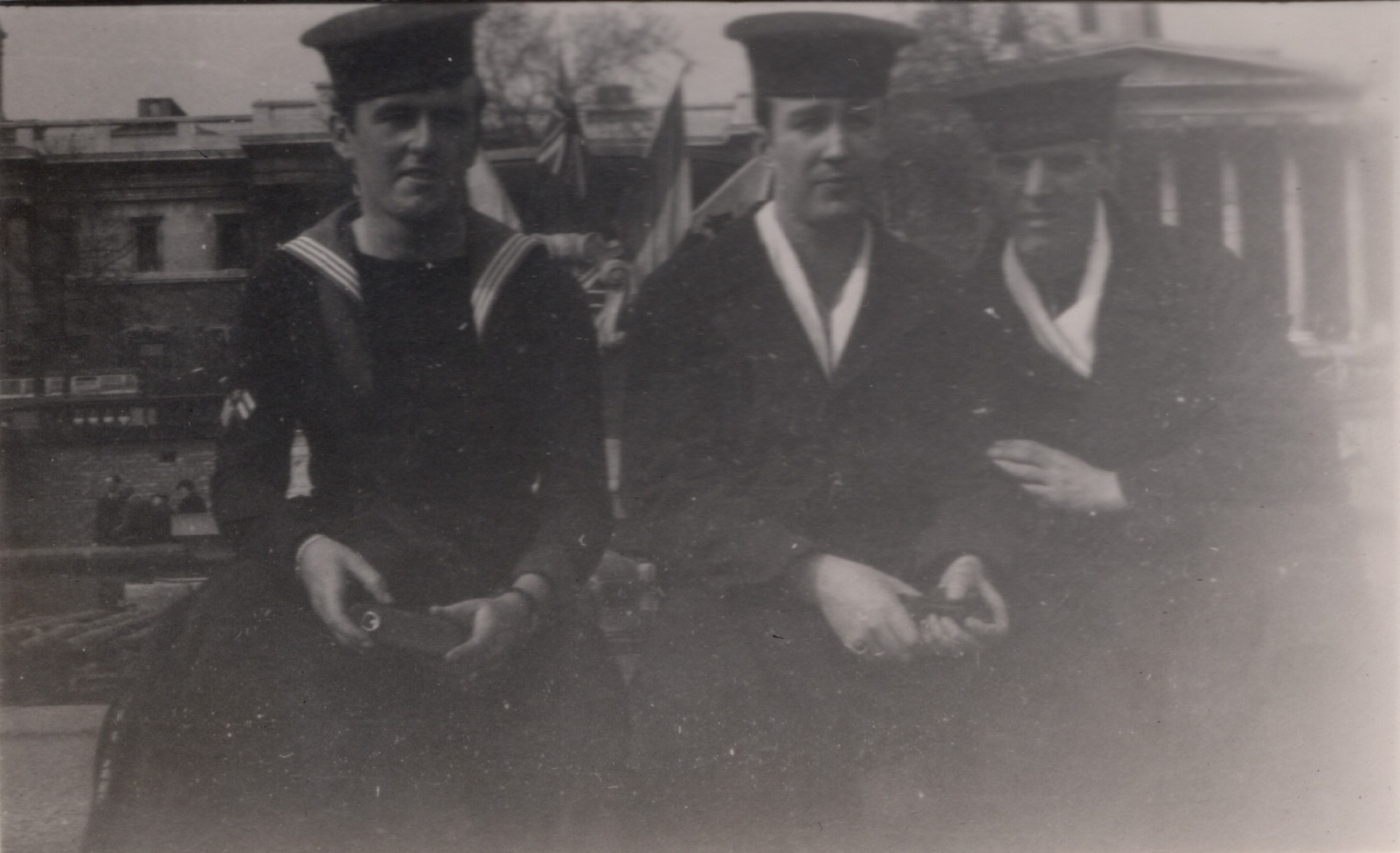 (NFA120) Westminster Abby, London, England (NFA121) Nelson's Monument, Trafalgar Square, London, England (NFA122) Signalman Norman Ayre, Coder Ross McLeod and Telegraphist Walter Cooper, London, England, Mar 1945 (NFA123) Tower of London, London, England (NFA124) Queen Victoria's Monument in front of Buckingham Palace