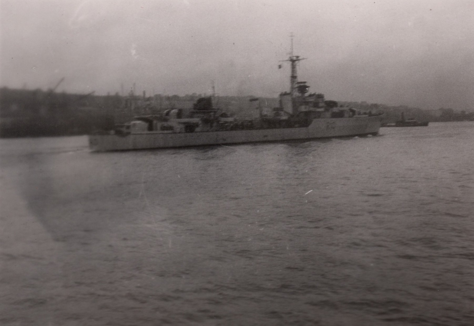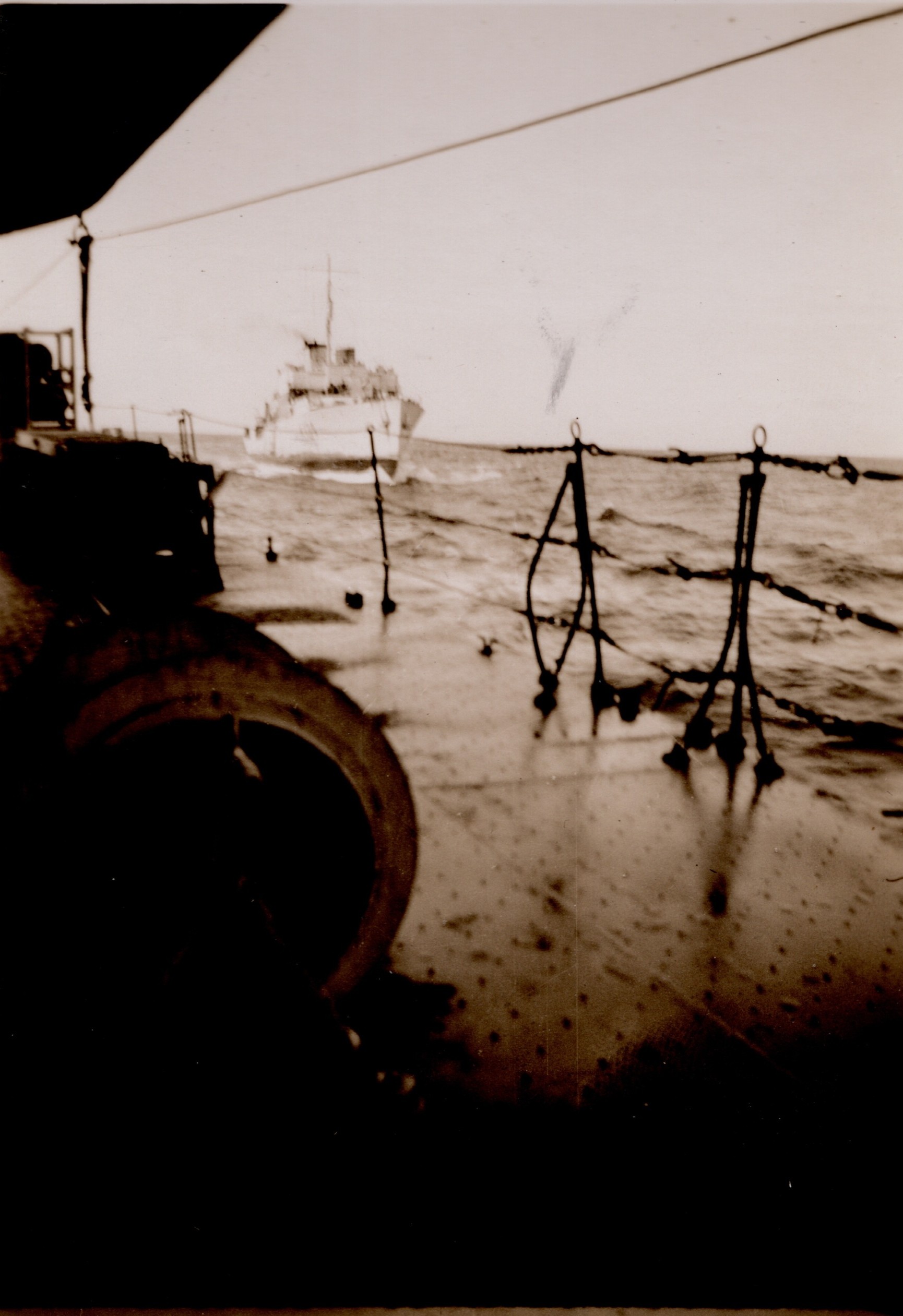 (NFA022) HMCS GIFFARD K402 in the Atlantic on Convoy Duty - Jun 1944 (NFA023) Small arms target shooting at sea on HMCS NEW GLASGOW K320 - Jun 1944 // Note the target stand secured to the stern of the ship. (NFA024) Merchant Aircraft Carrier Empire MacKay in convoy - Jun 1944 (NFA025) Merchant Aircraft Carrier Empire MacRae in convoy - Jun/Jul 1944 (NFA026) An English frigate [HMS MOURNE K261] about to dock at Londonderry Harbour (N. Ireland) (at the time their Signalman was calling shore station then HMCS NEW GLASGOW'S Signalman Norman Ayres answered) // back of photo