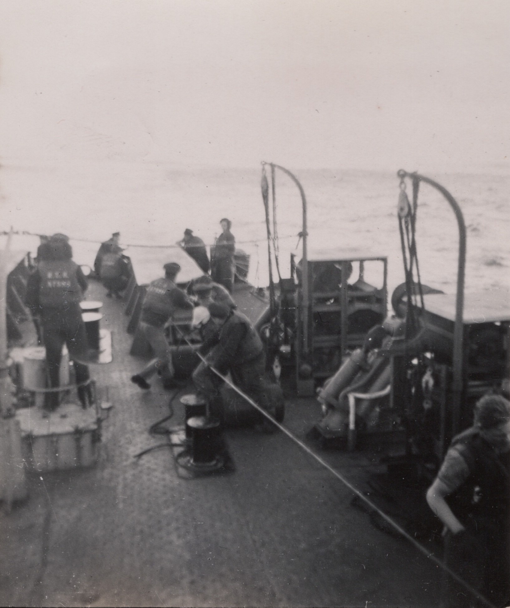 (NFA052) Quarterdeck of HMCS NEW GLASGOW K320 - undated (NFA053) Gun deck and bow of HMCS NEW GLASGOW K320 - undated (NFA054) Lieutenant Saunders, Anti-Submarine Control Officer (A/S C.O.) on the bridge of HMCS NEW GLASGOW K320 - undated (NFA055) HMCS NEW GLASGOW K320 S.O.C.1. - undated (NFA056) Boats crew, HMCS NEW GLASGOW K320 - undated
